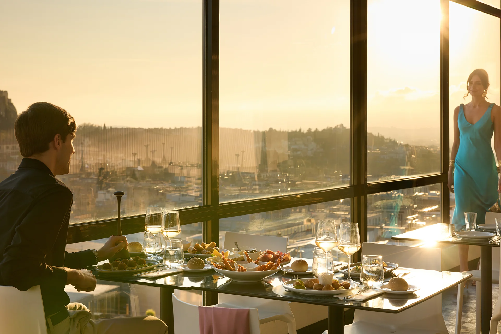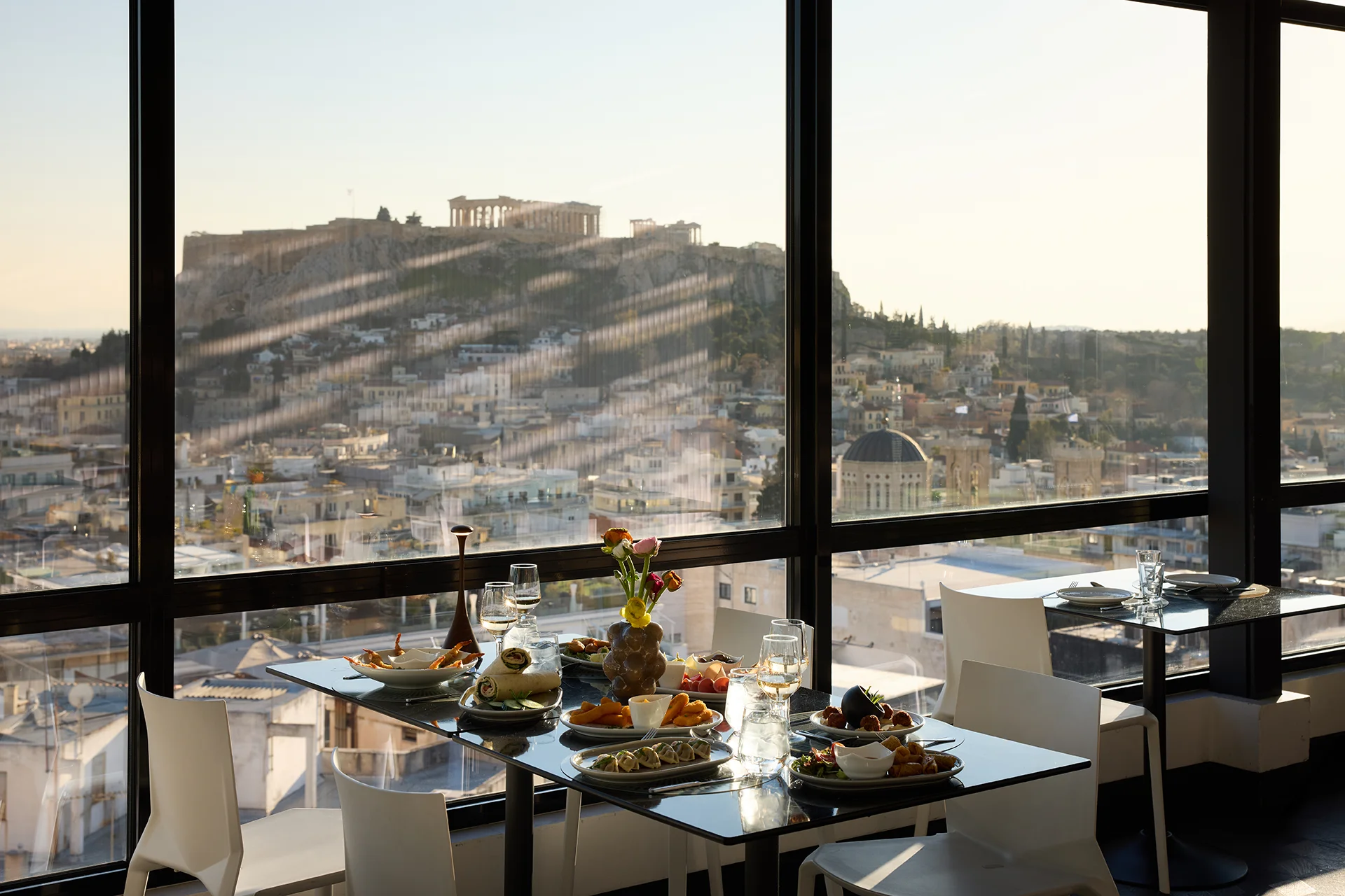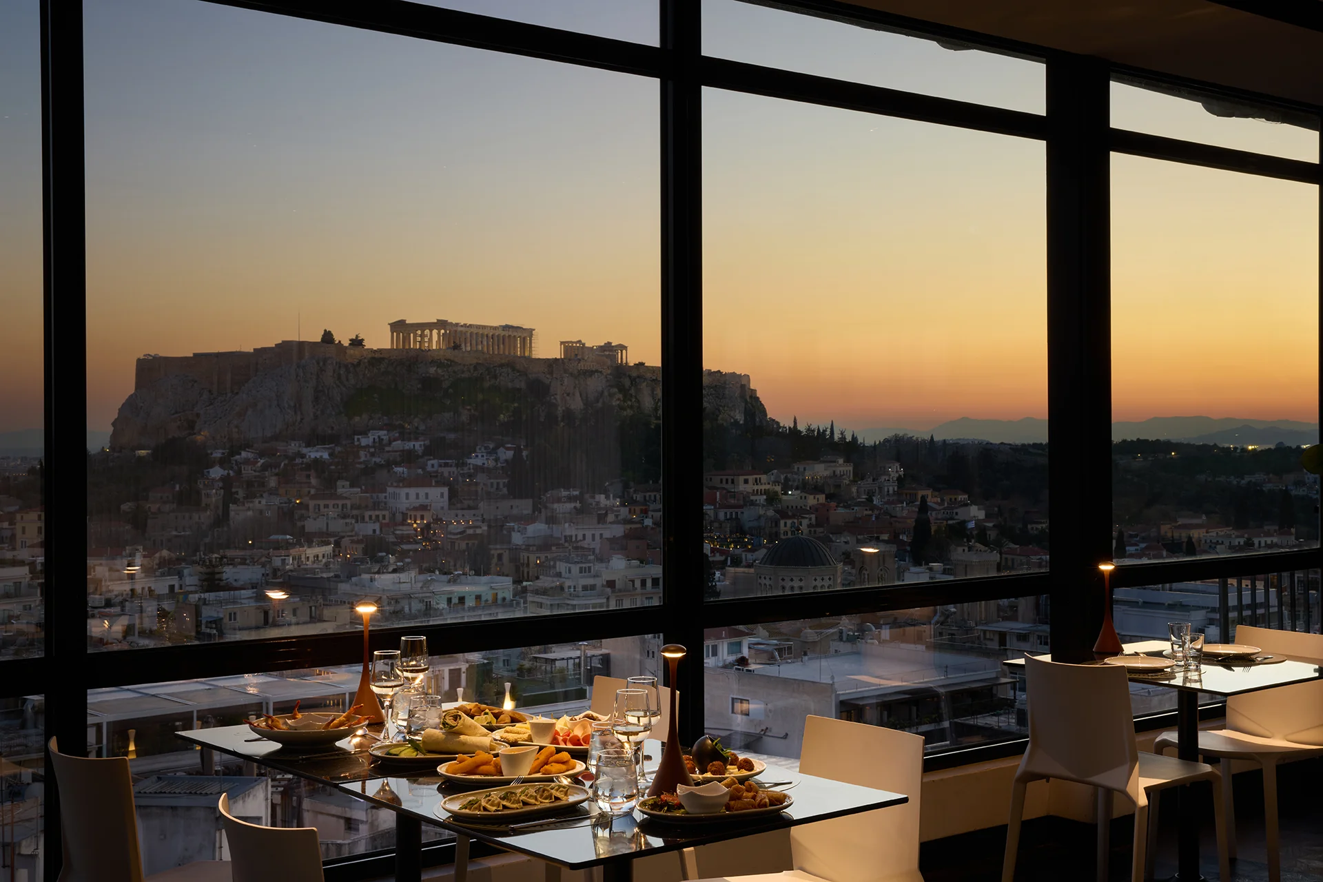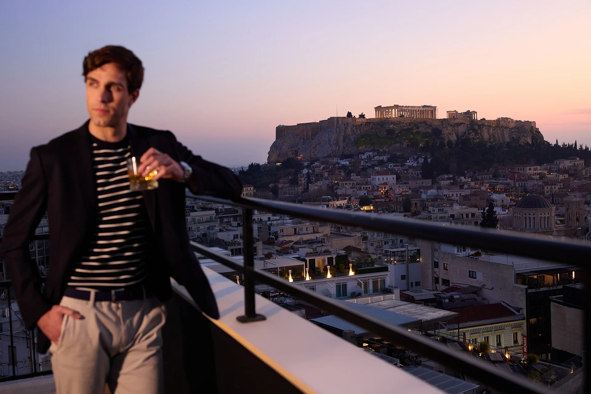 As the evening sun colors the sky pink, order your cocktail and watch the city and the Acropolis change shades, transforming right at your feet.